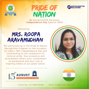 This Independence Day, SocialCraft24 Solution proudly presents the Pride of Nation – Independence Day Special 2025, a tribute to individuals whose dedication, achievements, and spirit reflect the very essence of India’s pride. From diverse fields and walks of life, these remarkable personalities have not only excelled in their respective domains but have also inspired countless others through their journey. As our nation celebrates 78 years of freedom, we honour these torchbearers of progress, unity, and excellence — the true embodiments of a stronger, brighter India.