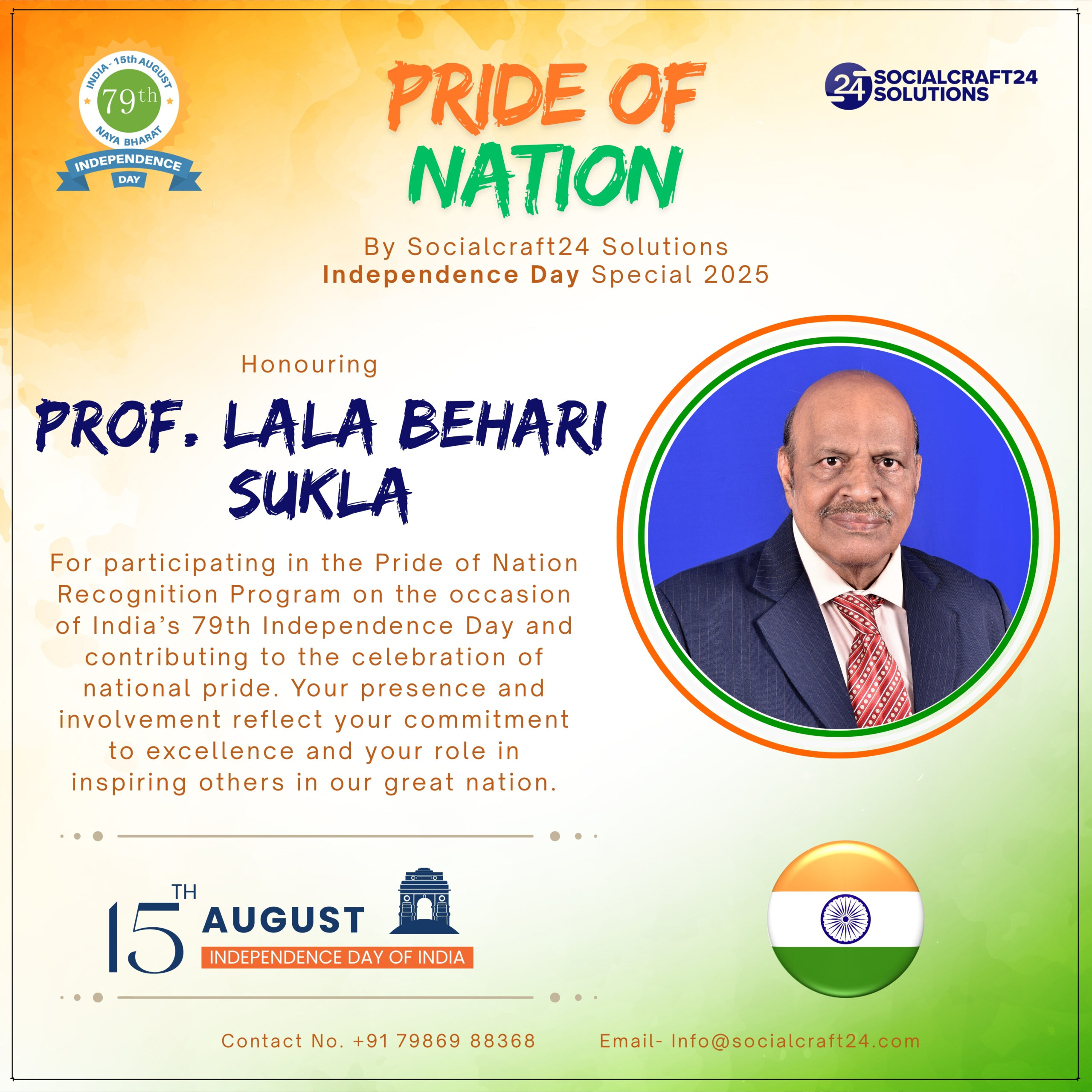 Prof. Lala Behari Sukla’s journey is a remarkable example of how passion, persistence, and intellectual rigor can transform science and society. His legacy is one of visionary leadership, global recognition, and an unwavering commitment to advancing sustainable and impactful research.
